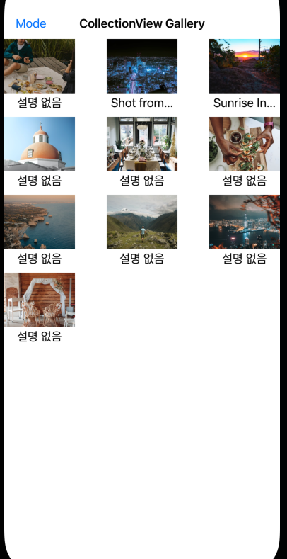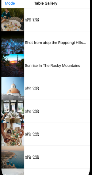 이렇게 테이블/콜렉션 뷰 모드가 지원되는 갤러리 앱이 완성되었습니다!
