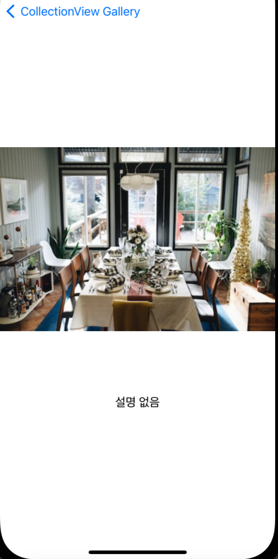 테이블/ 콜렉션 뷰는 각 셀을 클릭하면 해당 사진의 이미지와 설명을 좀 더 크게 보여주는 상세 페이지로 이동합니다. 이 기능역시 프로토콜로 구현을 해서 채택을 해서 중복적인 코드 없이 기능을 사용 할 수 있습니다.