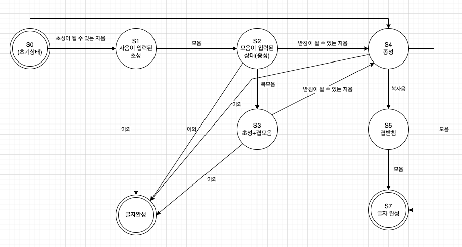 처음 Keyboard Extension으로 키보드 확장 프로그램을 개발 할 때 한글 조합이 알아서 되는줄 알았지만, 스스로 조합이 되지 않았다. 안드로이드는 자동으로 조합을 해주는데 ios에서는 스스로 알고리즘을 만들어야 합니다.. 오토마타에 관해 전공수업을 들었어서 한글 오토마타를 구상, 알고리즘으로 구현해보았습니다.