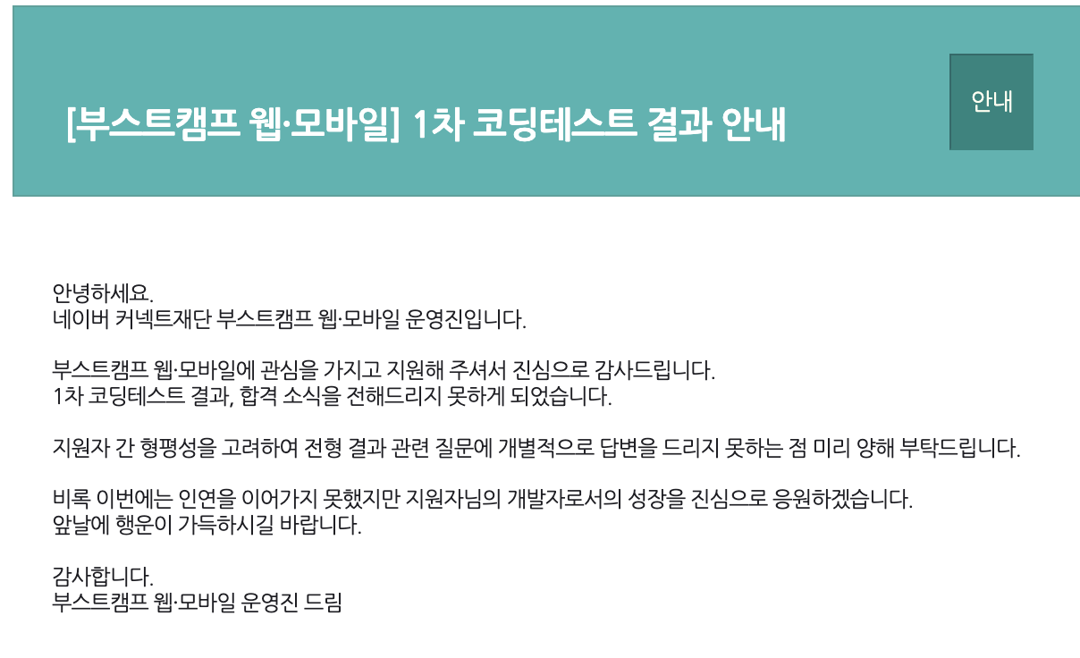 | 2023 네이버 부스트캠프 8기 1차 코테 후기 (0) | 2023.06.19 |