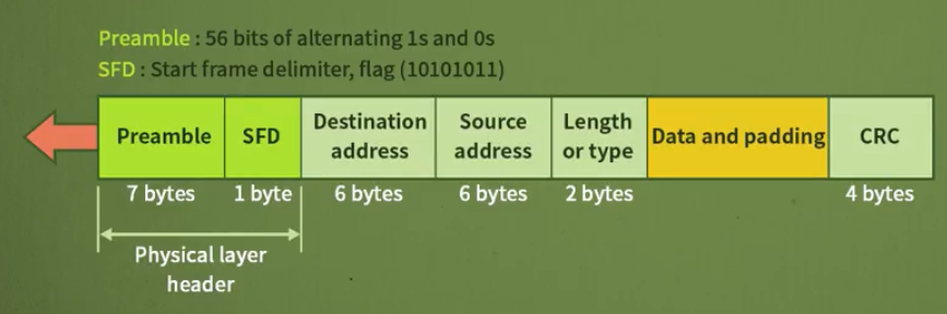 - SFD (Start frame delimiter): 프레임의 시작을 알림