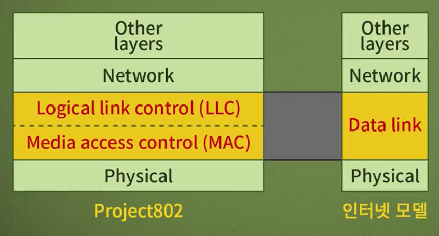 IEEE 표준 프로토콜은 데이터링크 계층을 두 계층으로 나눈다.