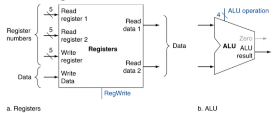 대표적으로 레지스터, ALU, mux, 메모리 등이 있다.