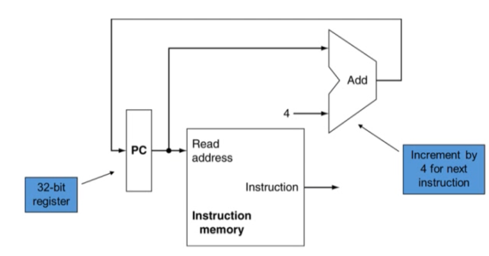 - 32비트 레지스터인 PC에 저장된 주소를 Instruction memory에 input으로 넣어서 output으로 Instruction이 나옴.