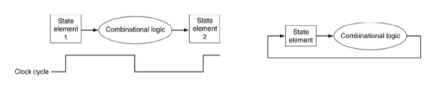 아래 사진을 보면 clock이 1이 되었을때 state element에서 값을 입력받아 combinational logic을 거쳐 state element에 저장 된다. 이 과정이 한 클락 사이클 안에 일어나는 것을 보장 받아야 함.