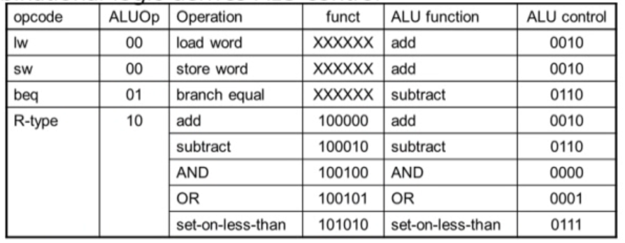 - ALU Control에서 ALUOP와 funct가 조합되어 ALUControl (4bit)이 조합되어 ALU의 input에 들어감