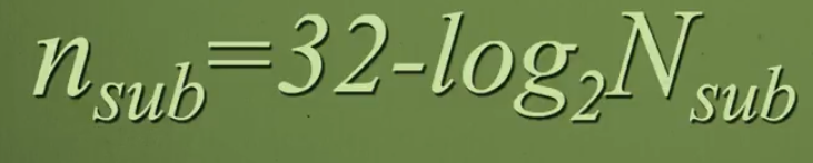 가변길이 주소지정에서 서브네팅을 할 때, 접두사의 개수는 다음 공식을 따름.