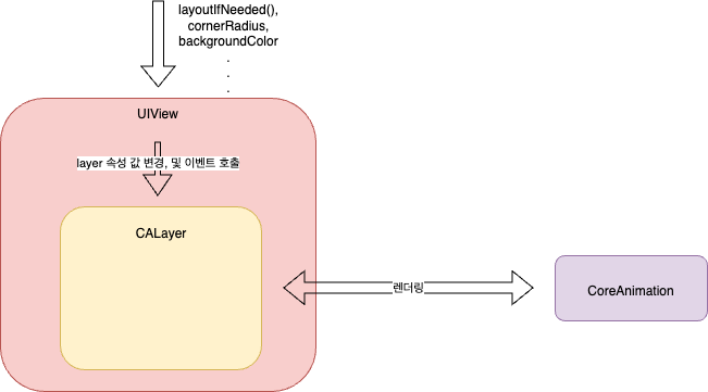 즉 레이어는 표시를 하는 역할을 하는 것이고, Core Animation은 corner Radius나 backgroundColor 같은 layer의 속성변경과 애니메이션을 처리하고 렌더링 하는 역할을 한다.