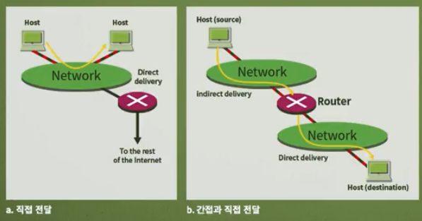 패킷의 최종 목적지가 전달자와동일한 네트워크에 있어 데이터를 직접 전달