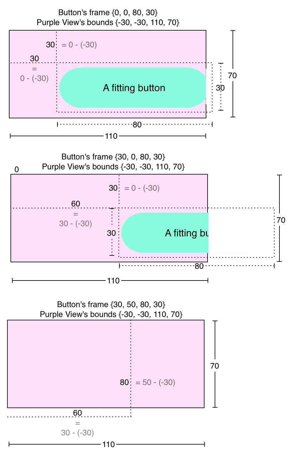 이때 부모뷰의 bounds의 원점을 변경 하면 자식뷰의 frame이 변경되어서 움직이는 것처럼 보이게 된다.