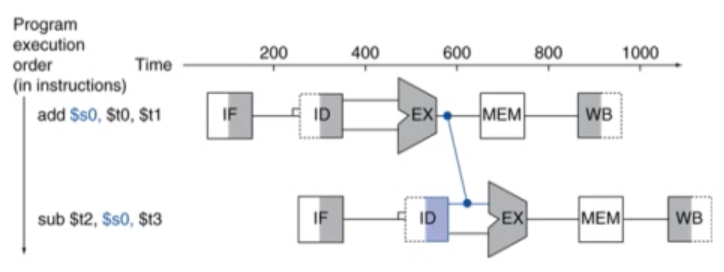 Load 명령어의 경우, Ex가 아닌 MEM일 때 결괏값이 나옴. 하지만 sub명령어는 ID일때 결과값이 필요.