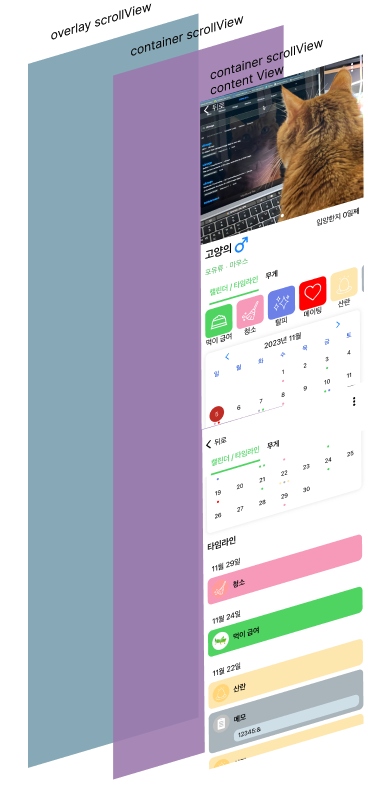 - overlay scrollview: 직접적인 스크롤이 일어나는 스크롤 뷰
