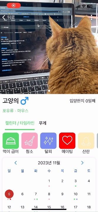 - container scrollview: HeaderView와 하단 탭바뷰로 구성