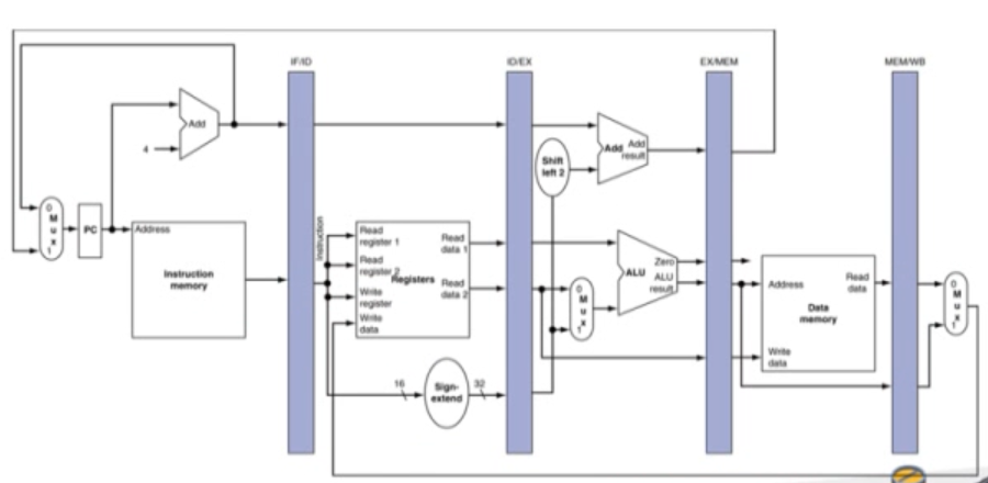 파이프라인은 각 스테이지에서 나온 값을 저장할 레지스터가 필요. 그래서 각 스테이지 사이에 레지스터를 둠