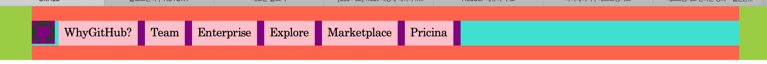 위 메뉴바를 살펴보자. 메뉴바를 보면 로고, 검색창, 로그인 등 여러가지 영역으로 나뉘어져 있다. 메뉴바를 제작할때 div로 영역을 나눠서 제작을 하는데 이때 영역을 나눠보면 이런 식으로 나��
