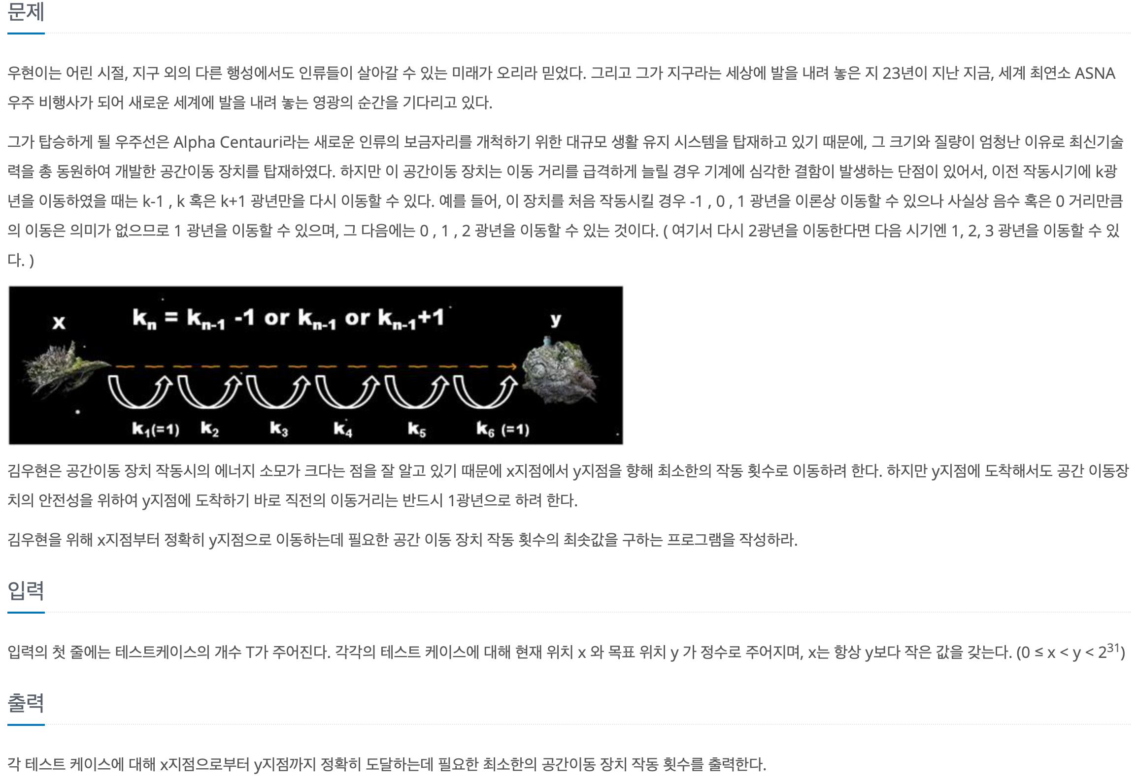 | 거리(y-x) | 경로 | 가장 큰 이동거리 | 작동횟수 |