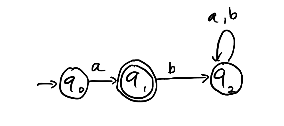 $$\delta(q_0,a)=q_1 , \delta(q_1,b)=q_2 이면 , \delta^*(q_0,ab)=q_2가 성립한다.$$