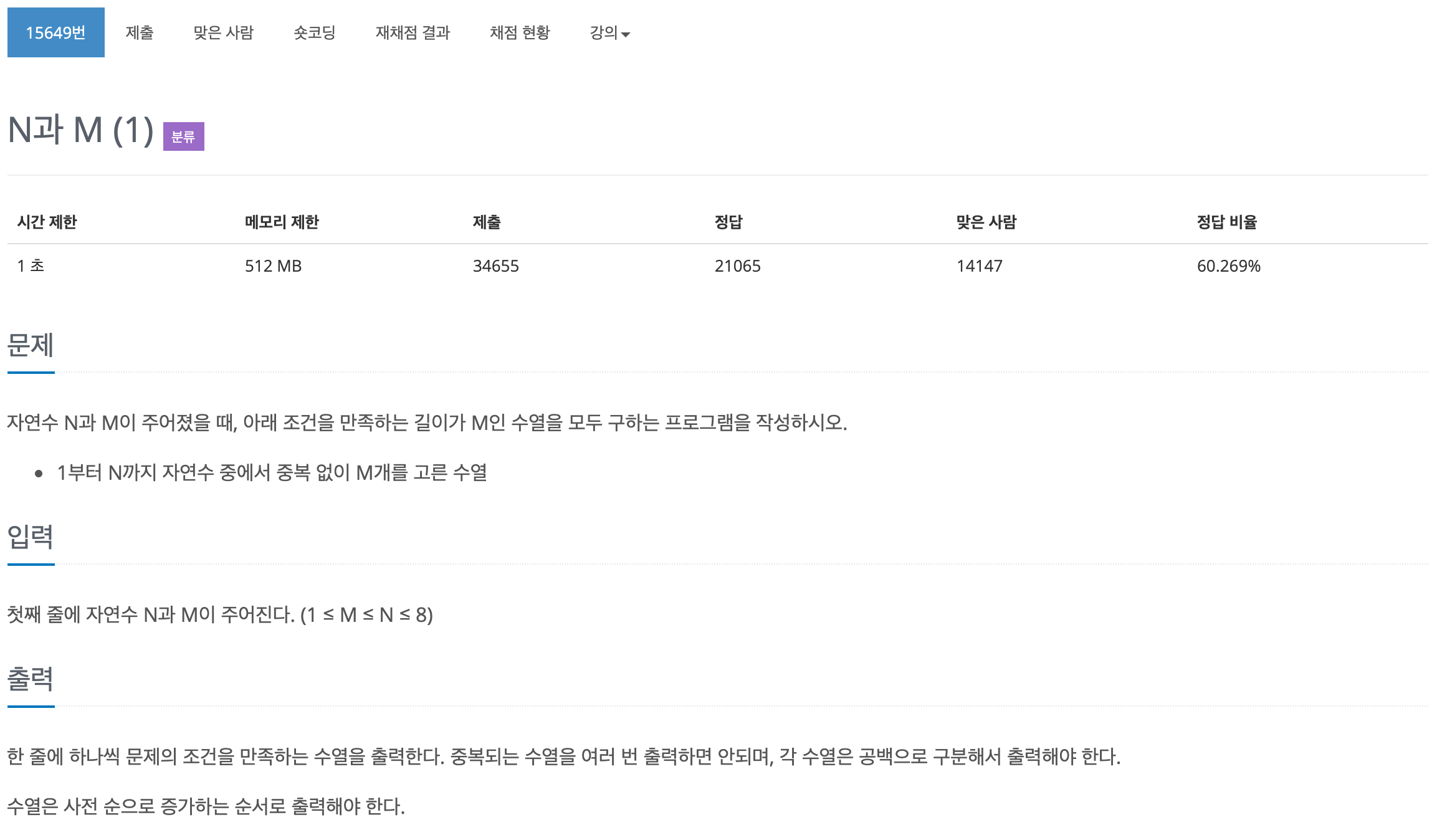 | 백준 15650번 : N과 M(2) (0) | 2021.05.14 |