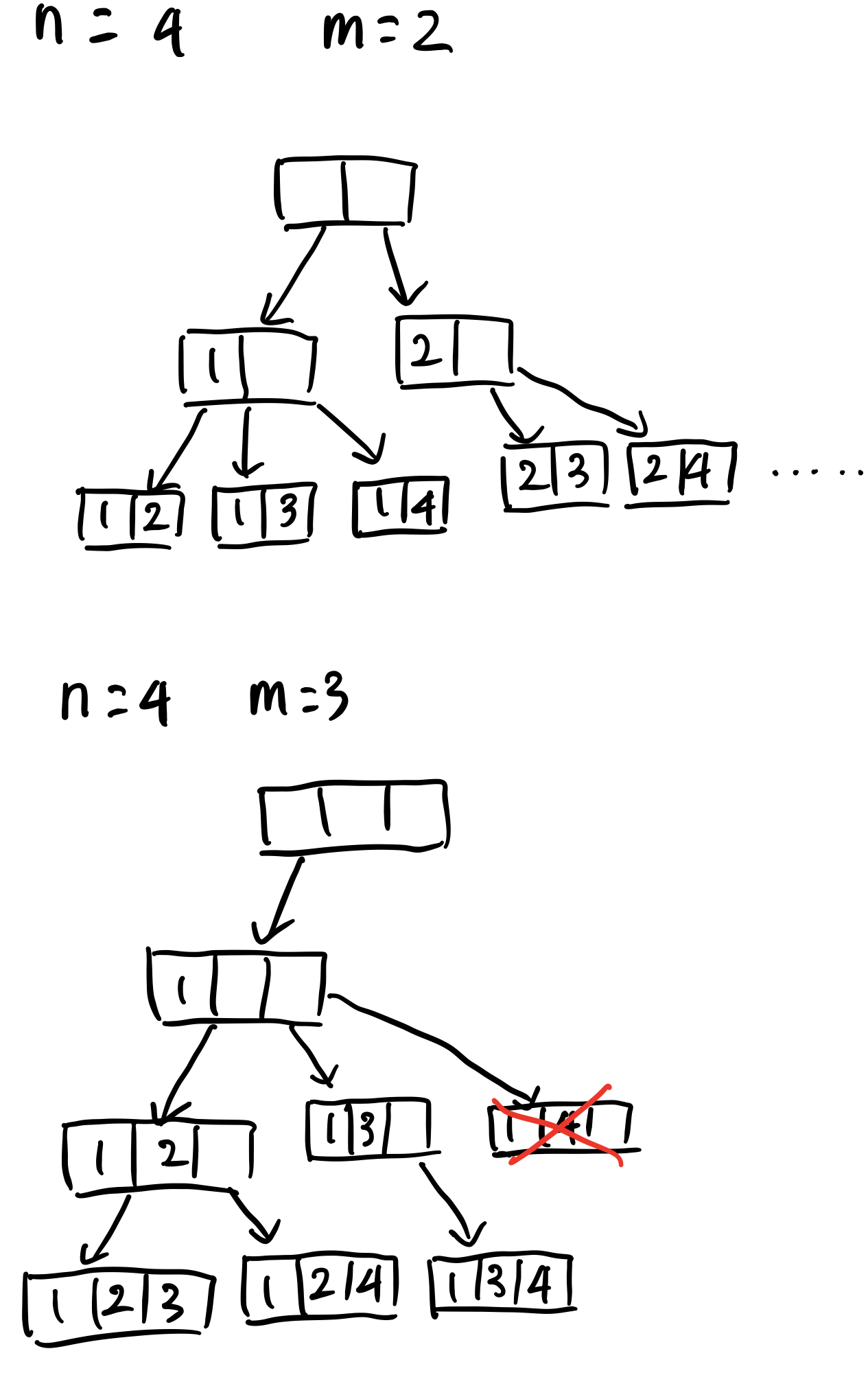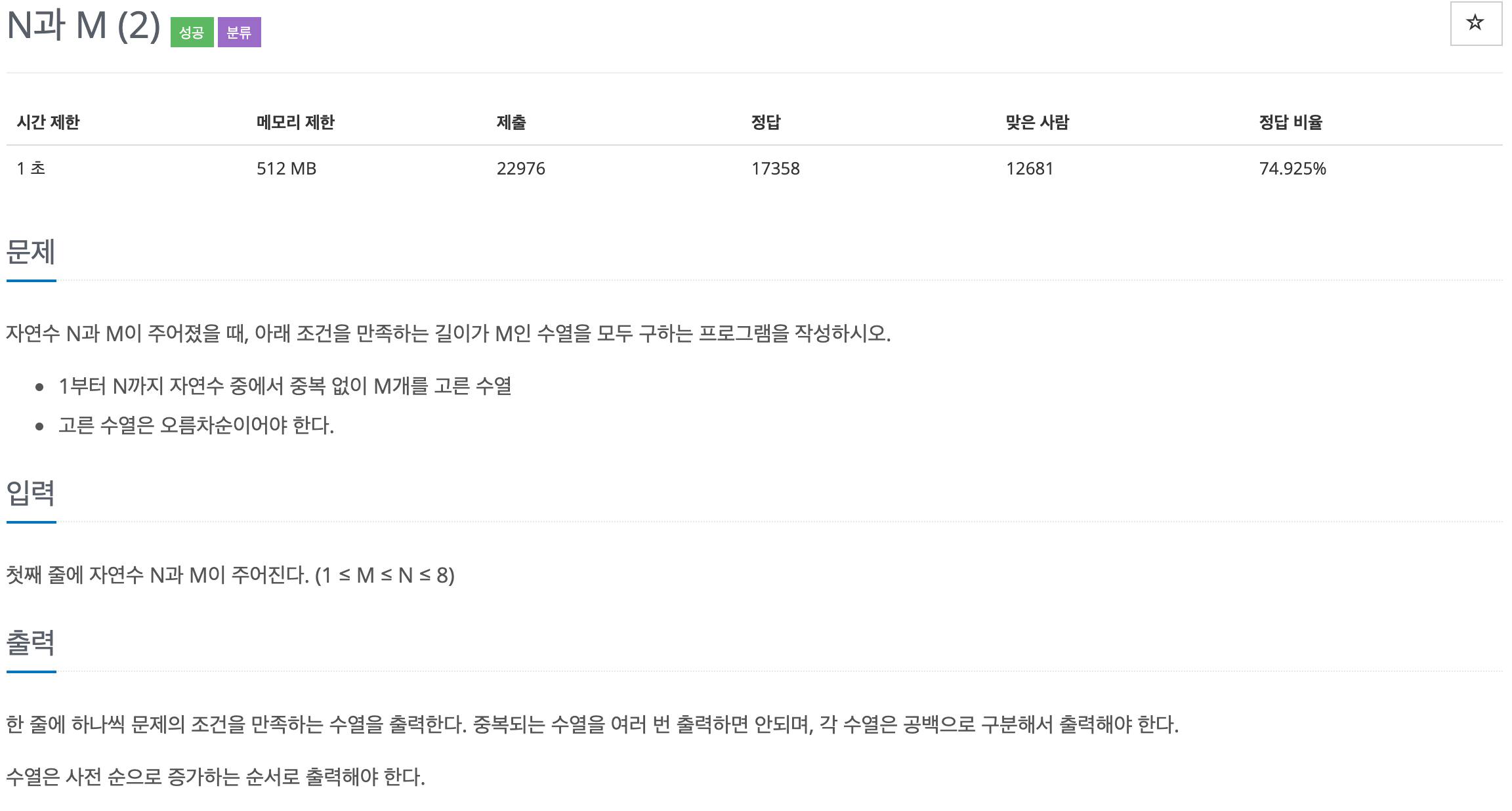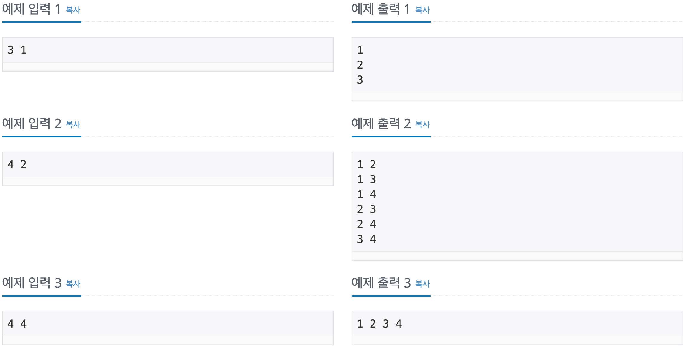 n과 m 1번 문제와 보기에는 비슷하지만, 조건이 몇개 붙는다. 조건은 사전순으로 출력해야 하며 중복되는 배열은 배제한다. 즉 1 2 3이나