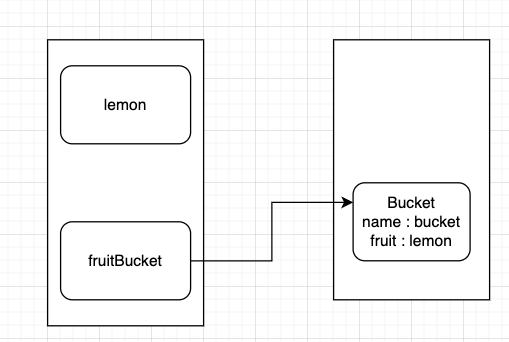 class타입인 Fruit를 banana라는 변수에 할당해주었습니다. 그리고 banana2,3은 banana변수를 참조하고 있습니다.